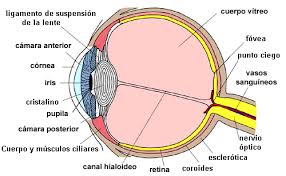 - El iris: tiene aspecto de una lámina circular con un orificio redondeado llamado pupila.